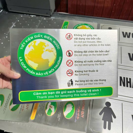 Biển an toàn, biển chỉ dẫn: dùng trong nhà máy, tòa nhà, khu công cộng tạo ra sự uy nghiêm và chắc chắn hơn hẳn nhựa thông thường