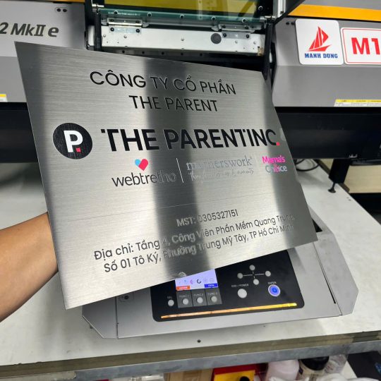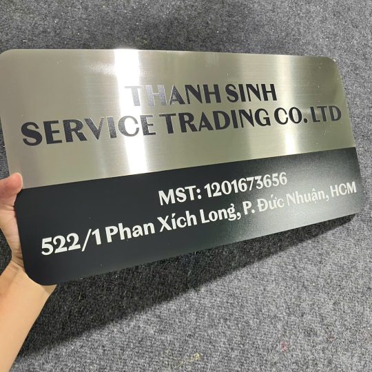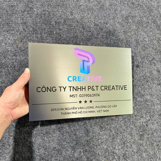 Biển công ty, biển văn phòng: gắn tại sảnh hoặc trước cửa để nhận diện thương hiệu, biển hiệu này sử dụng thay thế các biển bằng mica rất hữu ích